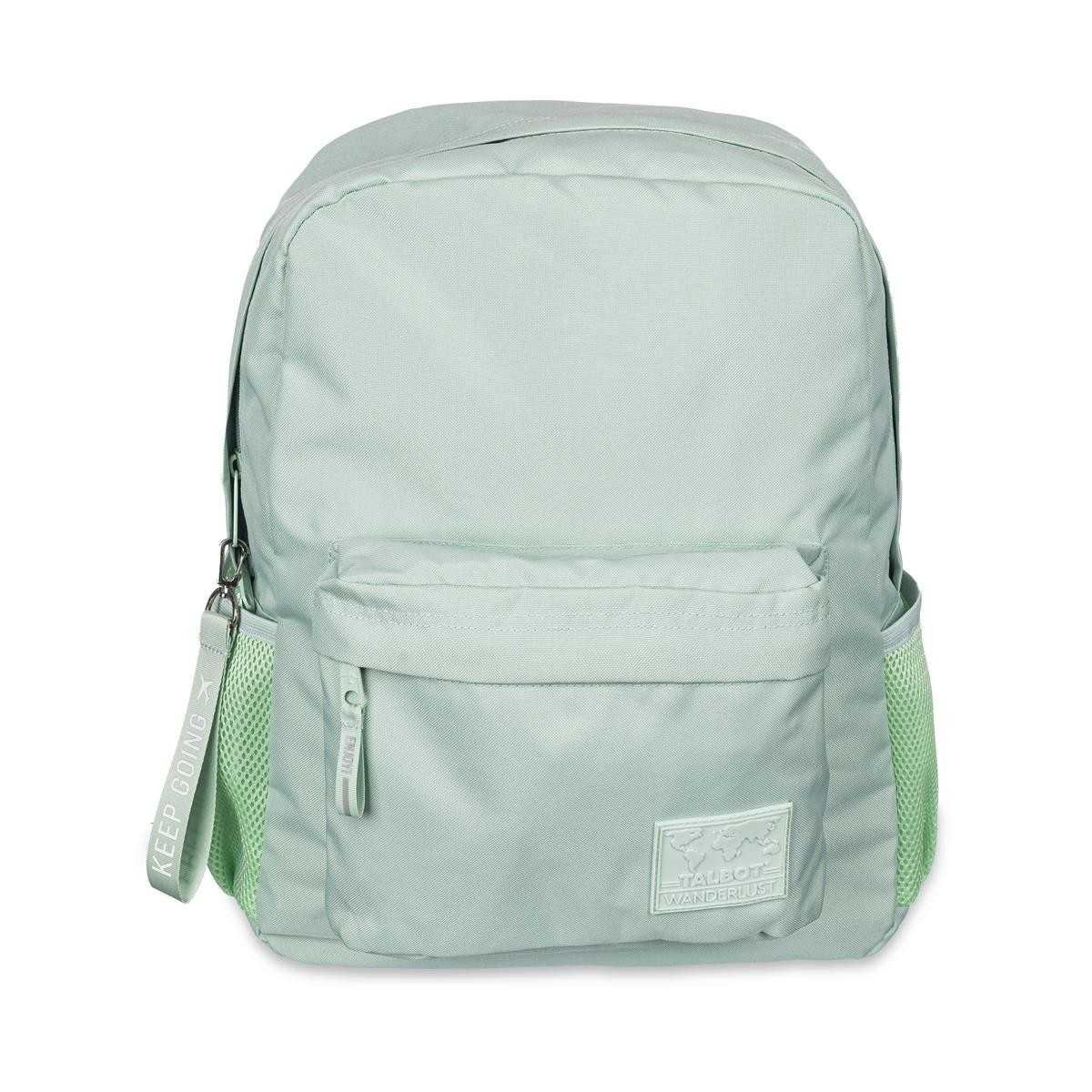 Mochila espalda Wanderlust lisa verde pastel, 2 cierres Talbot