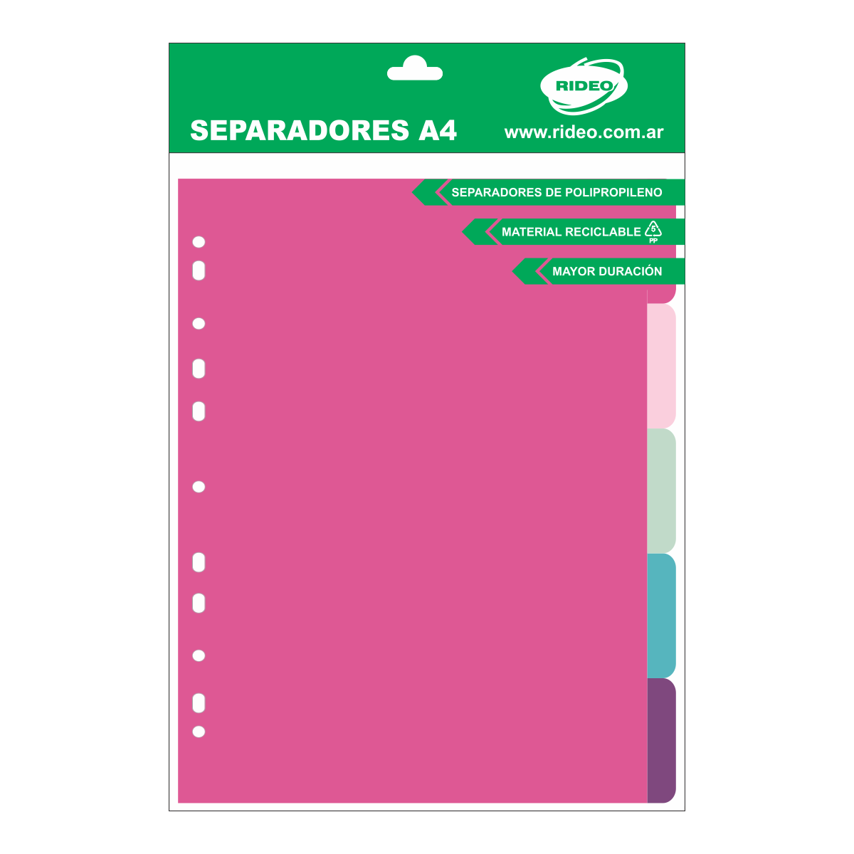 Separadores Plásticos A4 Colores pastel de 5 posiciones Rideo