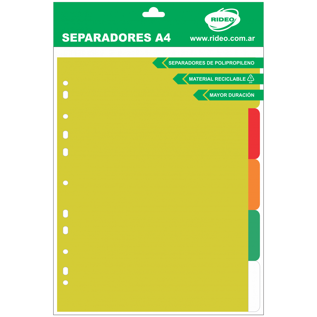 Separadores Plásticos A4 Intense de 5 posiciones Rideo